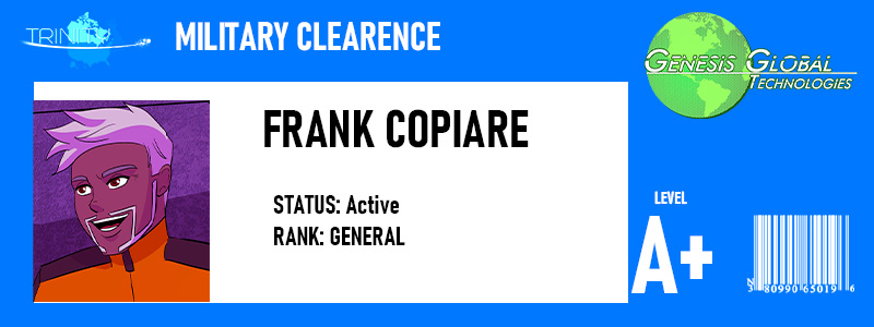 Age:38 Considered to be the Alliance's most charismatic engima, General Frank Copiare's position has stood the test of time. The youngest ever to be promoted to General at the 25, he has seen the cost of war more than most. He shields his true persona through his light hearted antics that border on moronic. He has taken an interest in Stephen Novus, having secretly been supplying him access to information that would normally be beyond his rank. He also was behind the early release and reassignment of Karin Dolor. | ||